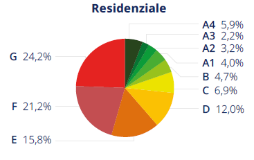 Anche nel non residenziale le classi più efficienti costituiscono un quinto del totale, con le meno performanti che scendono al 30,9%.